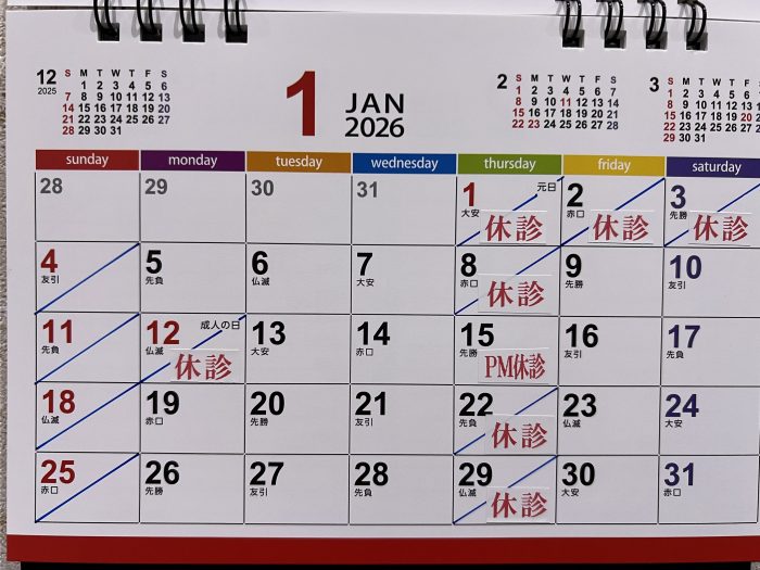 1/26㈪ 17:00まで診療(最終受付16:00)