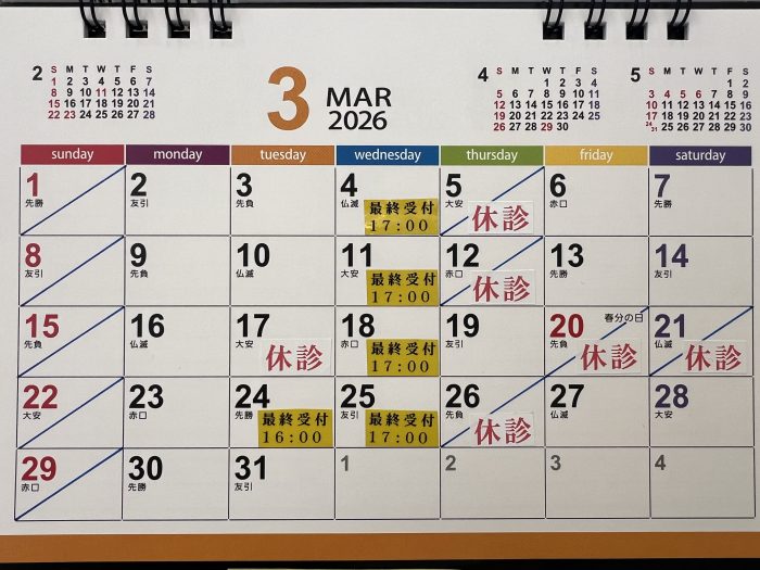 ホーム > お知らせ > 2026年3月診療・休診日のお知らせ